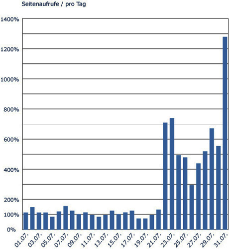 - Die Anzahl der Seitenaufrufe hatte sich innerhalb eines Tages versechsfacht.